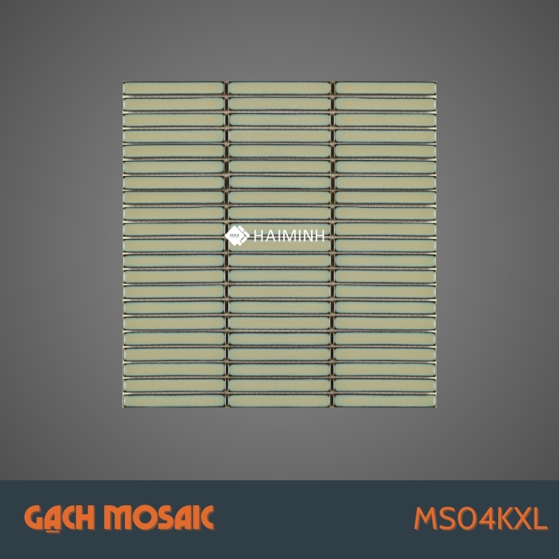 Gạch Mosaic thanh que Kitkat MS04KXL là lựa chọn lý tưởng để tạo nên không gian hiện đại, trẻ trung và khác biệt. Với gam xanh lá nổi bật, bề mặt bóng men rạn độc đáo cùng thiết kế dạng thanh que Kitkat, sản phẩm mang đến vẻ đẹp vừa tinh tế vừa độc đáo cho cả công trình dân dụng và thương mại. Hãy đến Gạch Hải Minh để trải nghiệm trực tiếp và nhận tư vấn từ các chuyên gia.